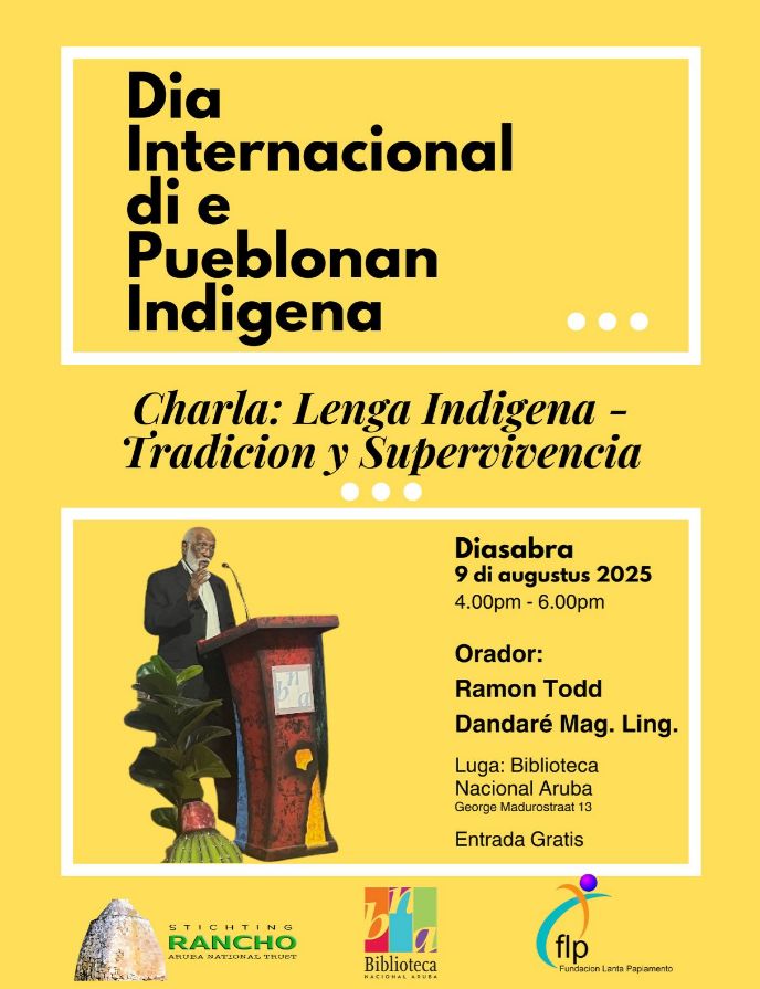 ORANJESTAD — Ter gelegenheid van de Internationale Dag van de Inheemse Volkeren organiseren Fundacion Lanta Papiamento (FLP) en Fundacion Rancho op zaterdag 9 augustus 2025 een speciale lezing in de Nationale Bibliotheek van Aruba.