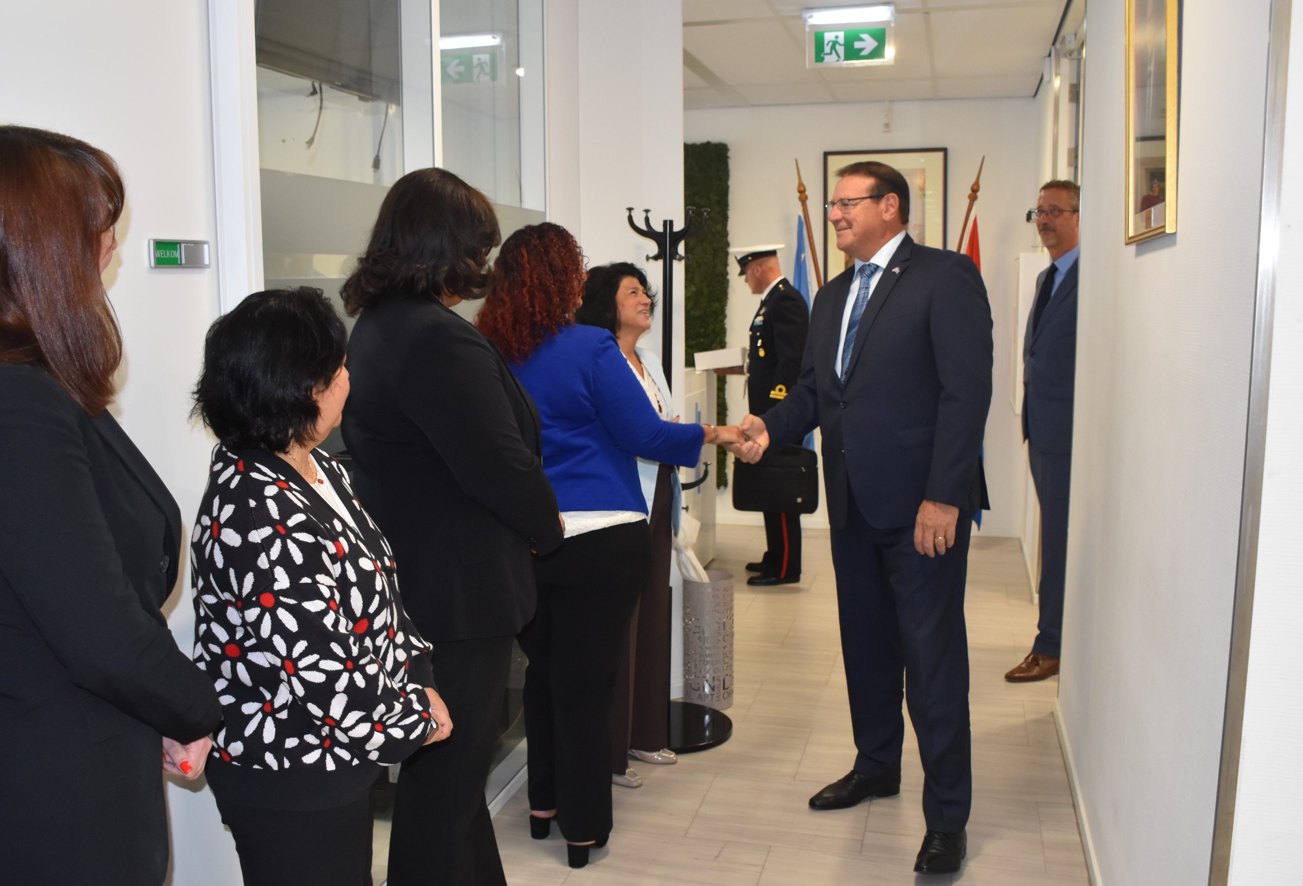 De gouverneur werd ontvangen door directeur Joselin Croes LL.M/M.Sc en de medewerkers van het Kabinet van Aruba.