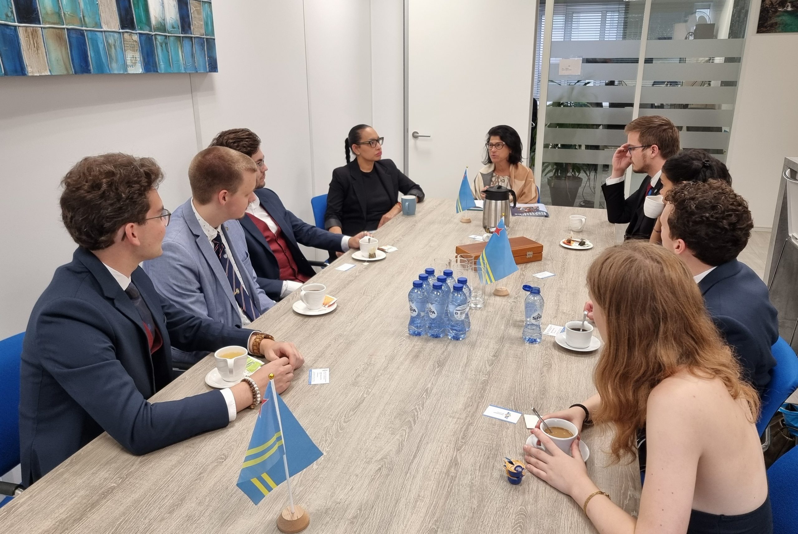 DEN HAAG — Een delegatie van SIB-Leiden heeft onlangs een bezoek gebracht aan het Kabinet van Aruba in Den Haag. De groep werd ontvangen door directeur van het Kabinet van Aruba Joselin Croes LL.M./M.Sc. en Jennifer Sneek van de afdeling Onderwijs van het Kabinet van Aruba.