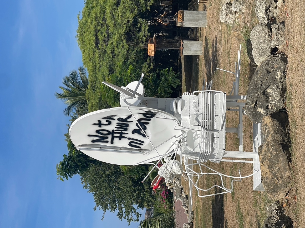 Zoals vaker in zijn oeuvre gebruikt Martha alledaagse materialen uit de bouw en van de straat, die in een andere context een nieuwe betekenis krijgen. Op de middelste schotel van het werk staat de tekst: “No ta Huur ni Bende!”, een boodschap die volgens de organisatie uitnodigt tot maatschappelijke reflectie.