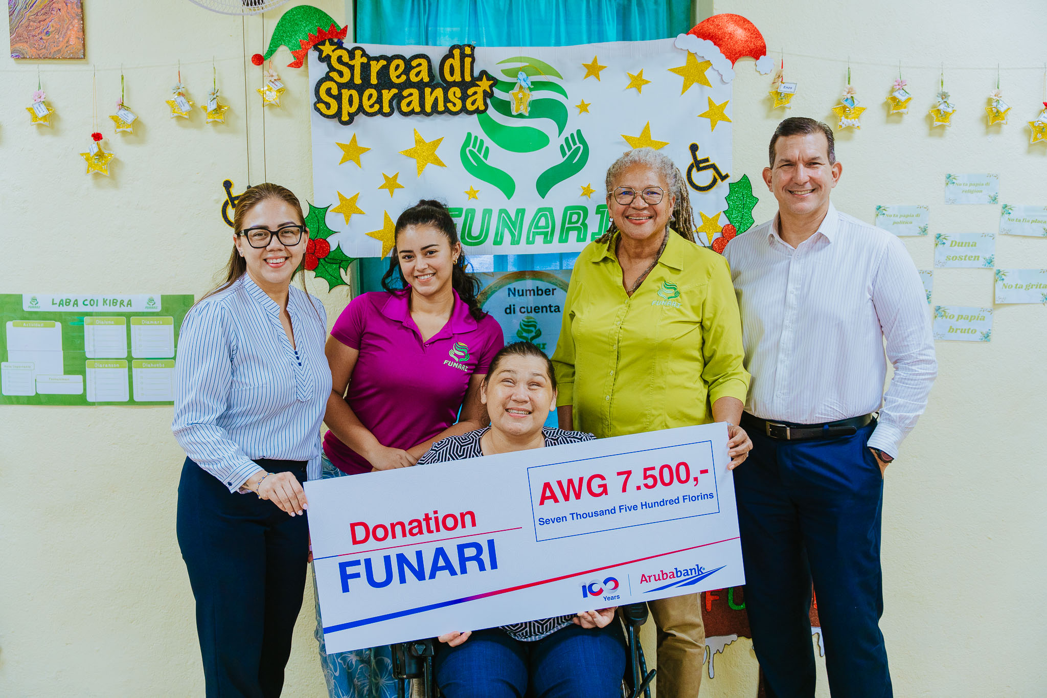ORANJESTAD — Aruba Bank heeft een donatie gedaan aan FUNARI om de organisatie te helpen bij het herstel na de grote schade die aan twee van haar bussen is ontstaan.