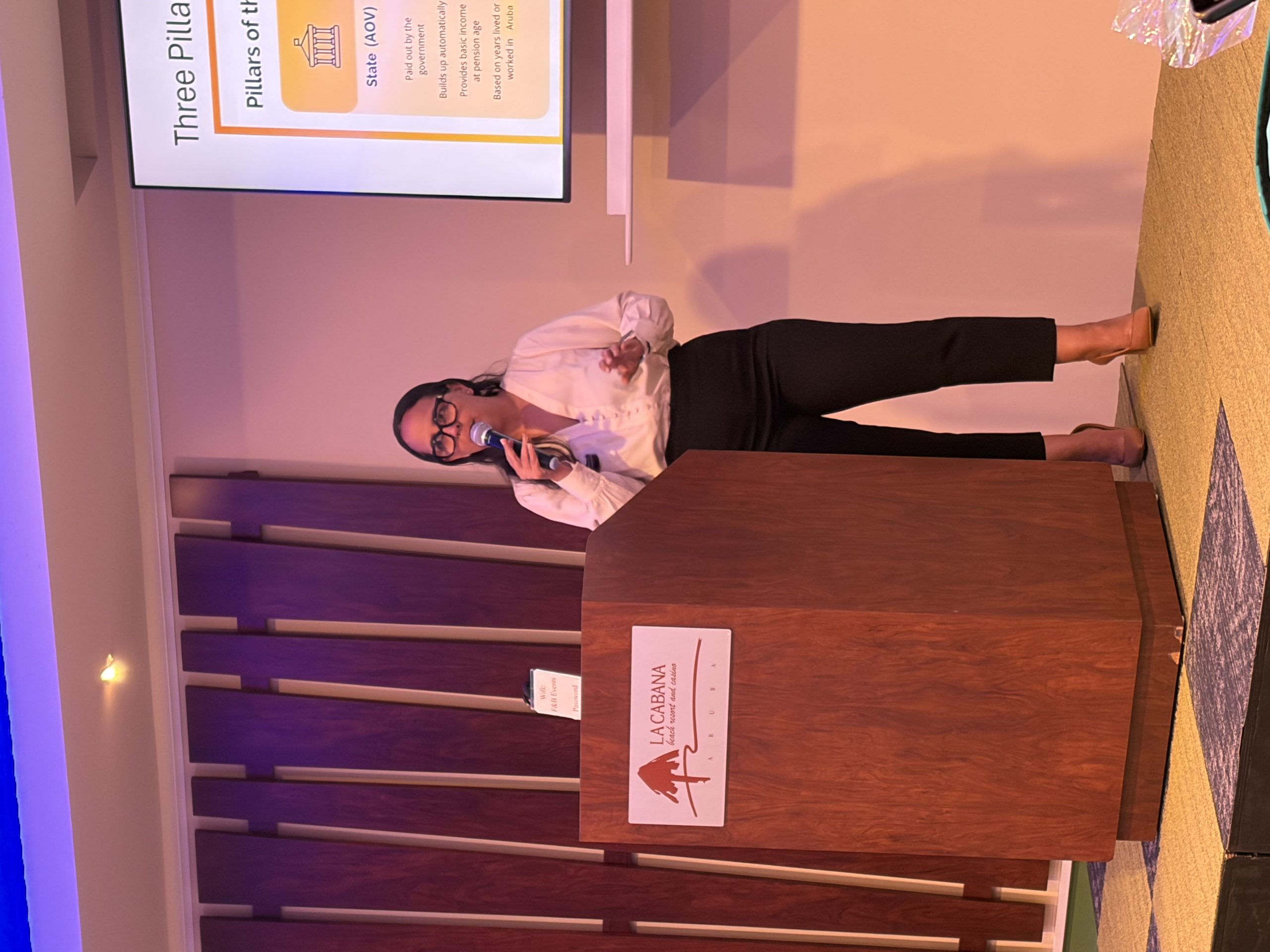Een van de speciale gasten tijdens de vergadering van maart 2026 was het Pension Fund Tourism Sector Aruba (PFTSA). Uitvoerend directeur Natalia Lacle gaf daarbij een uitgebreide presentatie over de meest recente ontwikkelingen binnen het fonds en de voorgestelde wijzigingen die aan de regering van Aruba zijn voorgelegd.