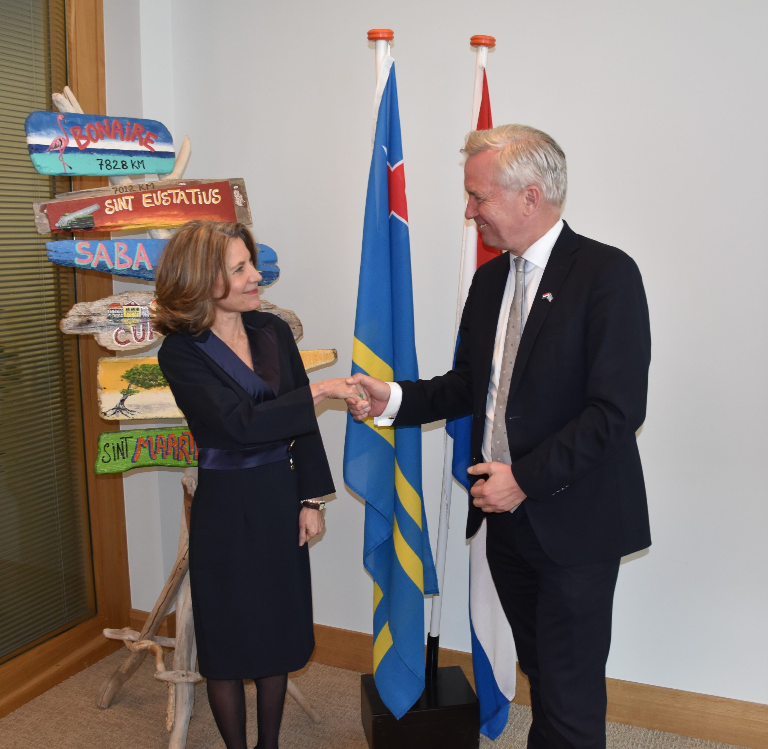 DEN HAAG — Minister Plenipotenciario Mildred Schwengle heeft een beleefdheidsbezoek gebracht aan staatssecretaris voor Koninkrijksrelaties Eric van der Burg. De ontmoeting vond plaats op uitnodiging van de staatssecretaris en stond in het teken van een eerste kennismaking.