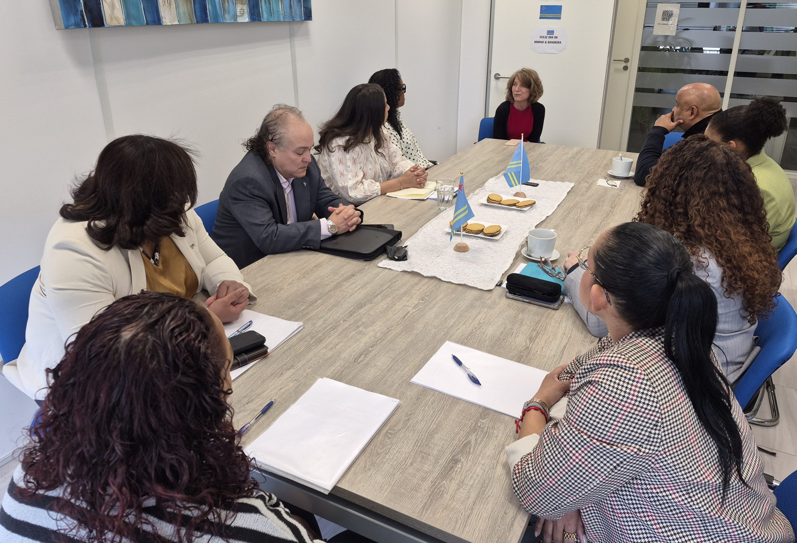 DEN HAAG — Minister Plenipotenciario Mildred Schwengle heeft bij het Kabinet van Aruba kennisgemaakt met het team van studiementoren dat Arubaanse studenten in hun eerste studiejaar in Nederland begeleidt. De ontmoeting vond plaats tijdens een regulier overleg met de mentoren.