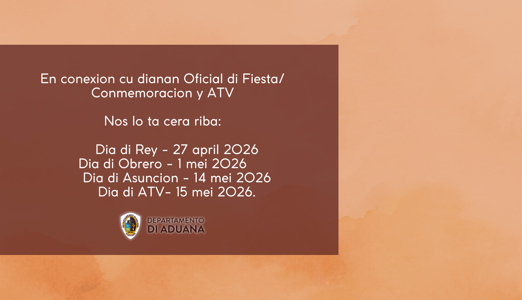 ORANJESTAD — De afdeling Douane wijst klanten en het algemene publiek erop dat haar kantoren in 2026 op vier officiële feest- en herdenkingsdagen gesloten zullen zijn.