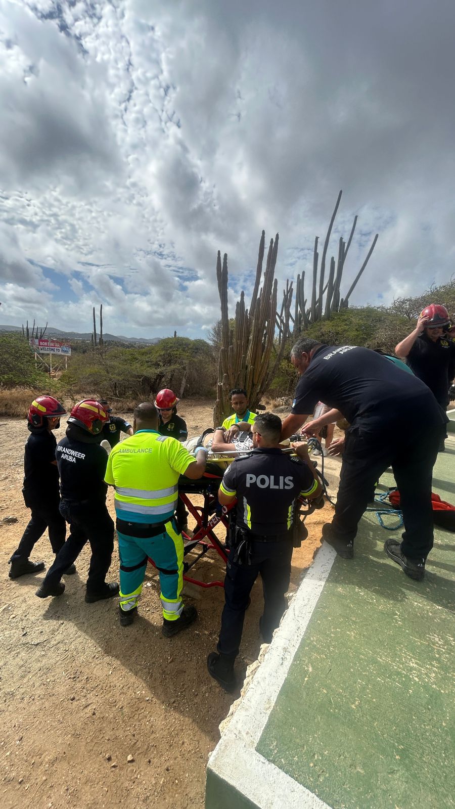 Santa Cruz, ARUBA – De politie en betrokken autoriteiten hebben met spoed ingegrepen op de top van Hooiberg om een 75-jarige Nederlandse toerist te redden die onwel was geworden. De situatie vereiste een gecoördineerde actie van de hulpdiensten, bestaande uit brandweerlieden en ambulancepersoneel, die gezamenlijk de beklimming maakten om de man te stabiliseren.