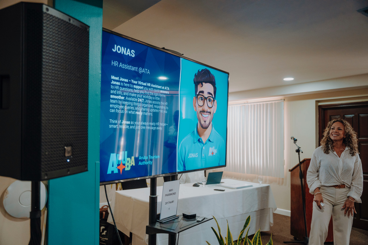 ORANJESTAD, Op maandag 14 juli vond de officiële lancering plaats van ‘Jonas’, een innovatief project tussen Aruba Tourism Authority (A.T.A.) en AFAS. Na een uitgebreid ontwikkelings- en voorbereidingsproces wordt A.T.A. de eerste klant in het Caribisch gebied die de Kunstmatige Intelligentie (Artificial Intelligence, AI) module van AFAS implementeert; als een ‘collega’ in de Human Resources afdeling van A.T.A.