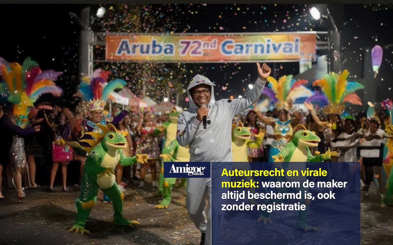 Volgens het internationale auteursrecht, waaronder het Berner Verdrag, dat ook in Aruba geldt, ontstaat auteursrecht automatisch op het moment dat een werk wordt gecreëerd en een originele, creatieve vorm heeft.