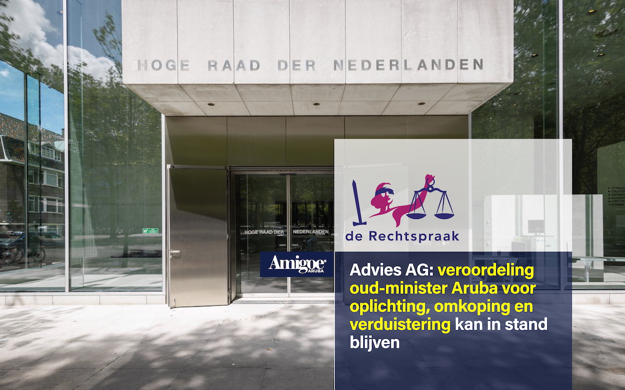 De veroordeling van een voormalig Arubaanse minister van Ruimtelijke Ontwikkeling, Infrastructuur en Milieu (later: Ruimtelijke Ontwikkeling, Integratie en Infrastructuur) wegens onder meer medeplegen van oplichting van het Land Aruba, passieve ambtelijke omkoping, misbruik van functie en verduistering, kan volgens de advocaat-generaal bij de Hoge Raad der Nederlanden volledig in stand blijven.