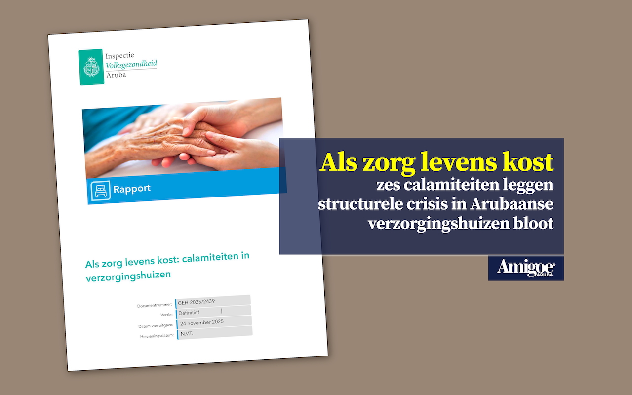 ORANJESTAD – De Inspectie Volksgezondheid Aruba (IVA) heeft met het rapport „Als zorg levens kost: calamiteiten in verzorgingshuizen” een indringend en zorgwekkend beeld geschetst van de staat van de ouderenzorg op Aruba. Tussen 2020 en 2024 onderzocht de Inspectie zes vermoedelijke calamiteiten binnen verzorgingshuizen. In alle gevallen werd na uitgebreid onderzoek vastgesteld dat daadwerkelijk sprake was van een calamiteit in de zin van de Landsverordening kwaliteit in de gezondheidszorg: een onverwachte gebeurtenis in de zorg met ernstig schadelijk gevolg of overlijden. als_zorg_levens_kost_calamiteit…