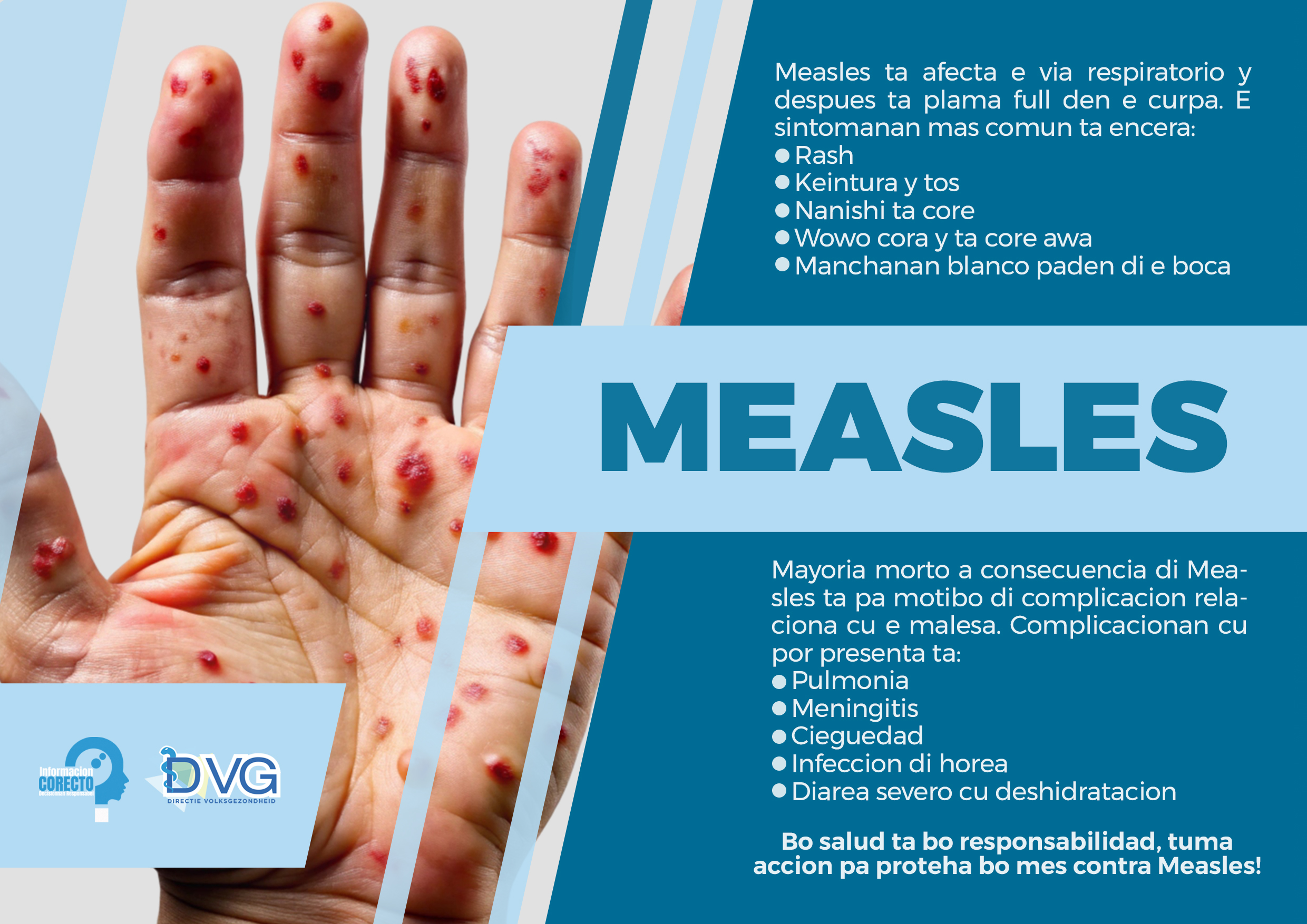 DVG benadrukt dat bescherming tegen mazelen ook een persoonlijke verantwoordelijkheid is. Voor meer informatie kunnen inwoners terecht op de Facebookpagina van Directie Volksgezondheid DVG Aruba, via Instagram op directie_volksgezondheid_aruba, op de website www.dvg.aw, telefonisch via 5224200 of per e-mail via servicio@dvg.aw.