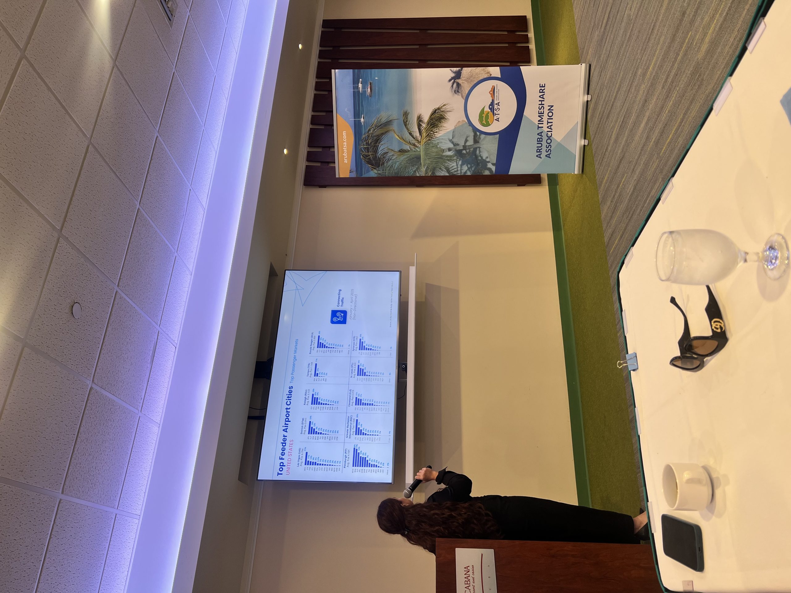 Tijdens de bijeenkomst kregen de leden verder een uitgebreide presentatie over de luchtverbindingen met Aruba in 2025 en de stand van zaken rond de renovatie van de luchthaven. Die presentatie werd verzorgd door Mary Joan Wardlaw, Customer Relationship Officer, en Jo-Anne Arends, Aviation Business Development Executive van Aruba Airport Authority NV.
