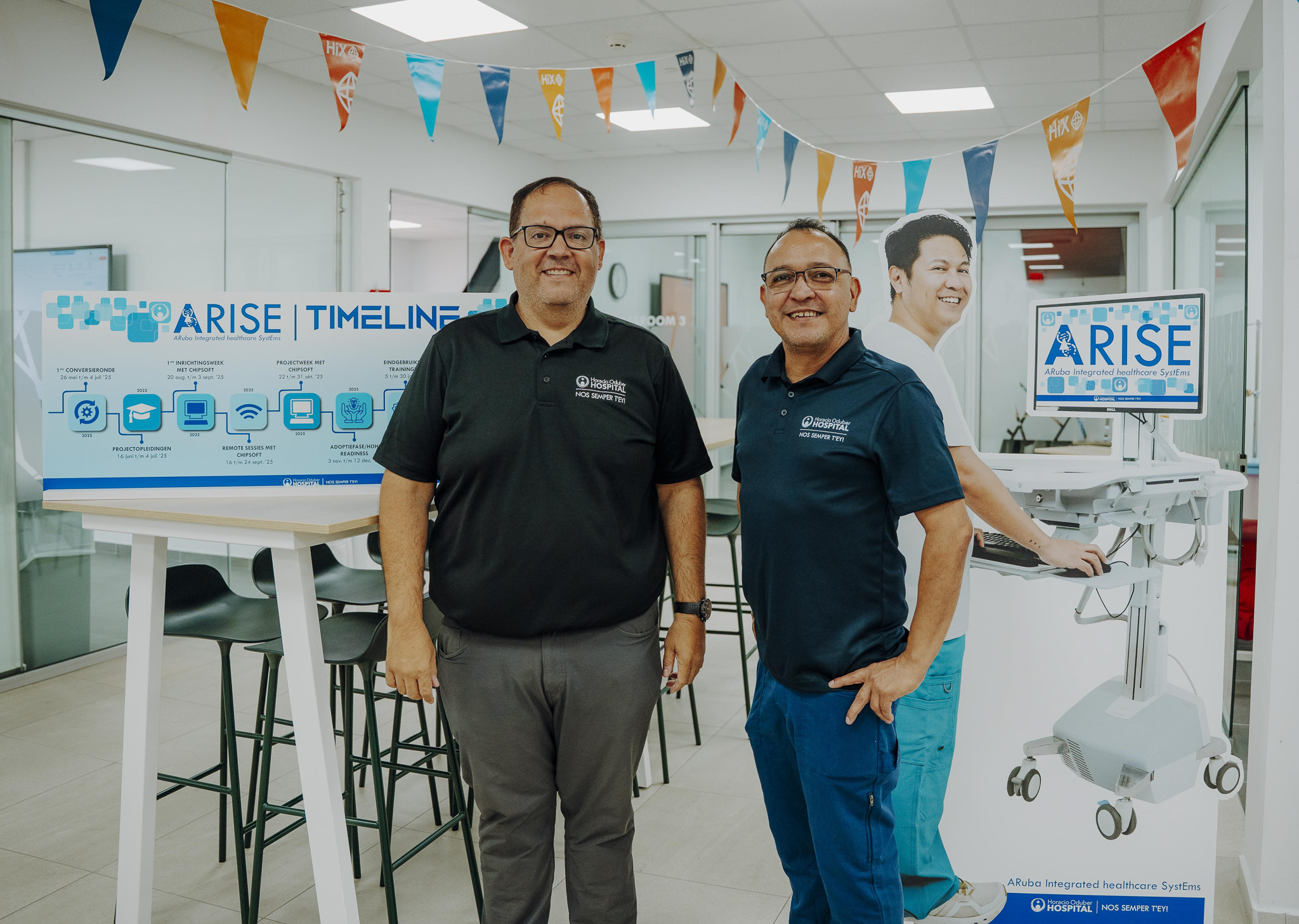 Virgil Oehlers, manager ICT, spreekt van een van de belangrijkste weken binnen het project. Ongeveer tweehonderd medewerkers zijn betrokken bij de voorbereiding. In de afgelopen week kwamen in totaal 25 consultants van ChipSoft en Furore naar Aruba om gelijktijdig trainingen te verzorgen. Volgens Oehlers onderstreept dat de omvang van het traject. De aanwezige specialisten ondersteunen niet alleen de voortgang van de planning, maar beantwoorden ook vragen van medewerkers en helpen bij het oplossen van knelpunten.