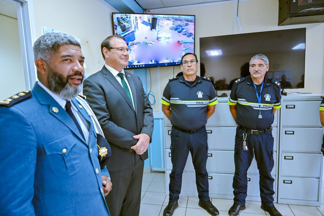 Het werkbezoek werd afgesloten met een rondleiding in het Operation Command Center (OCC) in Savaneta. Daar kreeg de gouverneur een uitgebreide presentatie over de werking van het radarsysteem en de politiecentrale.