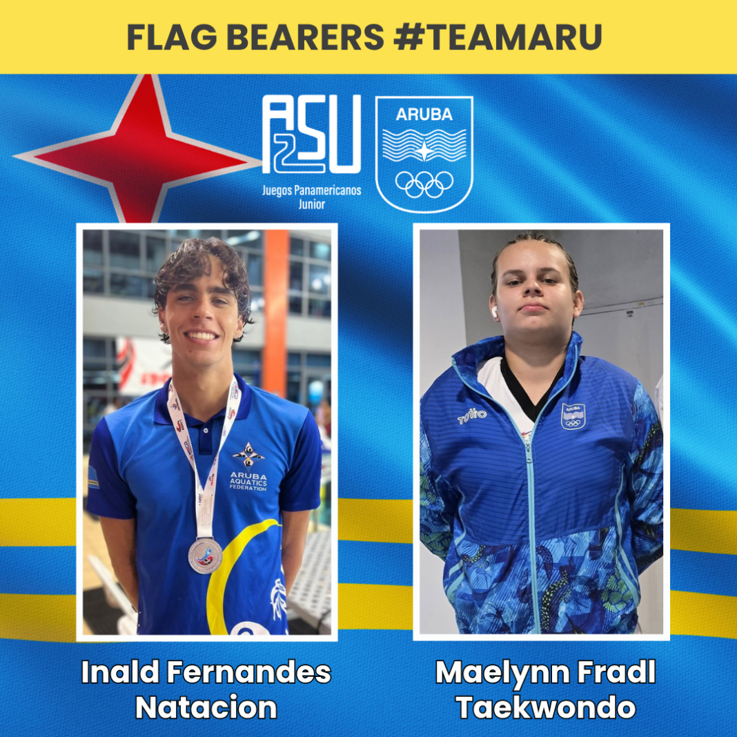 ORANJESTAD — Het Comité Olímpico Arubano (COA) heeft bekendgemaakt dat taekwondoka Maelynn Fradl en zwemmer Inald Fernandes Perna de vlaggendragers van Team Aruba zijn tijdens de openingsceremonie van de Pan-Amerikaanse Junior Spelen ASU2025 in Asunción, Paraguay.