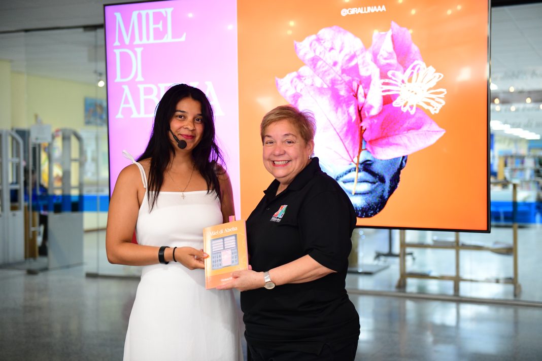 Na afloop van de presentatie overhandigde Gil Barrios vijf exemplaren van Miel de abeha aan de Biblioteca Nacional Aruba.