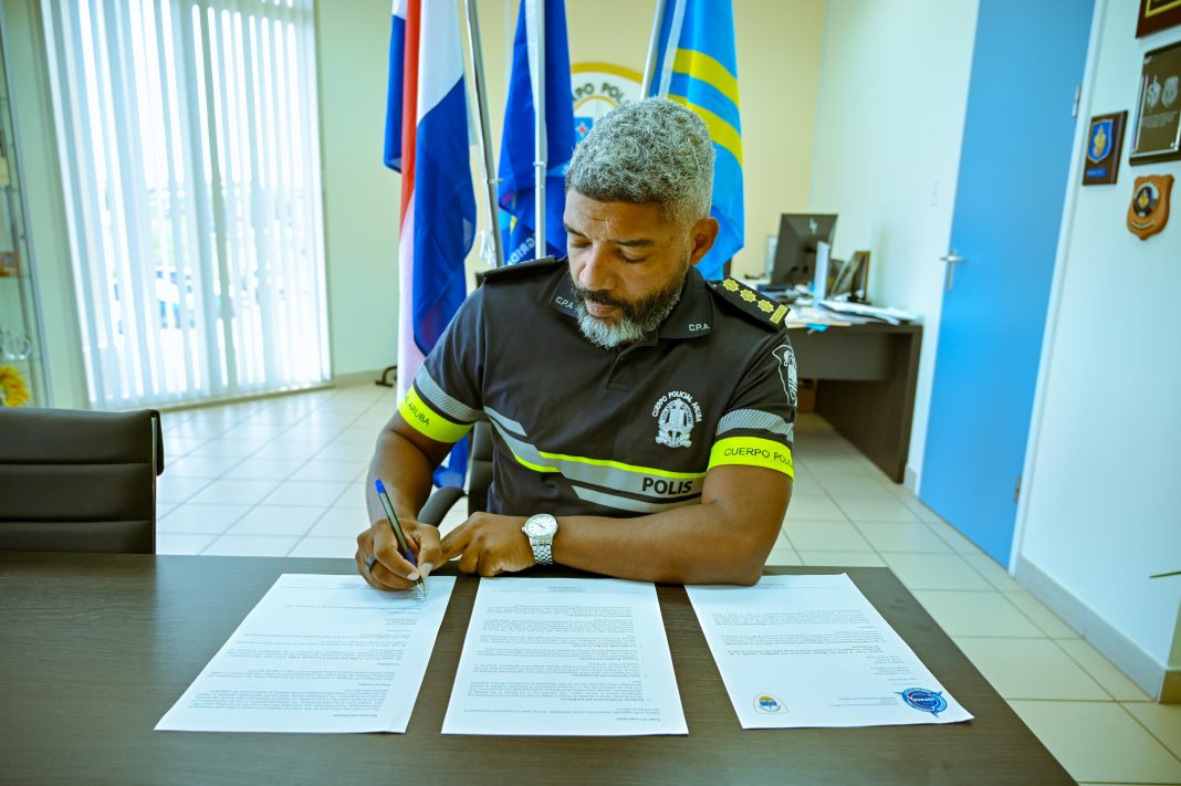 SANTA CRUZ — Het Korps Politie Aruba (KPA) heeft vorige week samen met de andere korpschefs binnen het College van Korpschefs een bezoek gebracht aan de organisatie CARICOM IMPACS in Barbados. Tijdens dat bezoek werd samen met de uitvoerend directeur van CARICOM IMPACS, luitenant-kolonel Michael Jones, een letter of intent ondertekend.