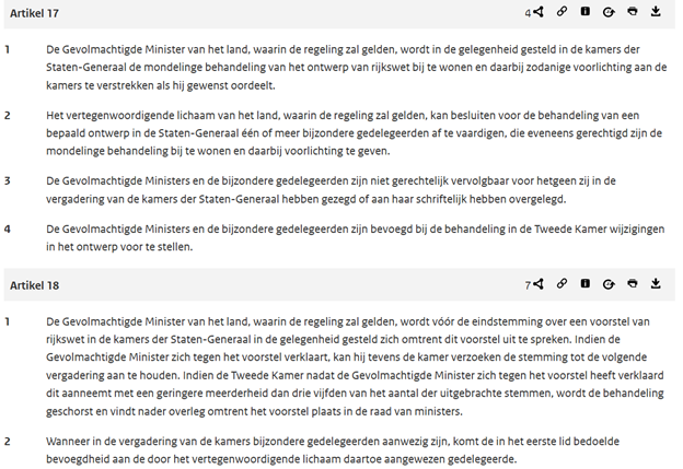 Vrolijk stelt verder dat Goeloe onvoldoende op de hoogte is van de staatsrechtelijke procedure rond een Rijkswet. Hij verwijst daarbij naar het Statuut voor het Koninkrijk, met name de artikelen 15 en 16. Volgens hem wordt in die bepalingen vastgelegd wie een Rijkswet indient en op welke wijze de betrokken landen hun verslag kunnen uitbrengen. Ook benadrukt hij dat de uiteindelijke behandeling en stemming over een Rijkswet plaatsvinden in Nederland, door de 150 leden van de Nederlandse Tweede Kamer, en niet in het parlement van Aruba.