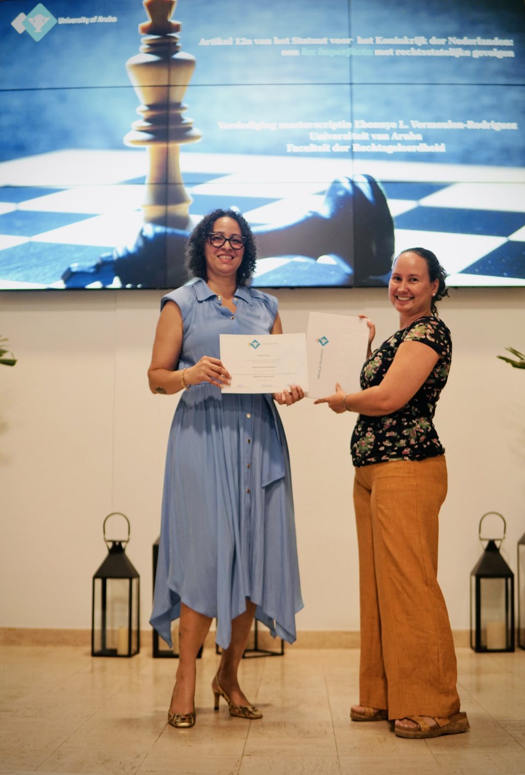 Zij verdedigde haar masterscriptie met als titel: ‘Artikel 12A van het Statuut voor het Koninkrijk der Nederlanden. Een lex imperfecta met rechtsstatelijke gevolgen.’