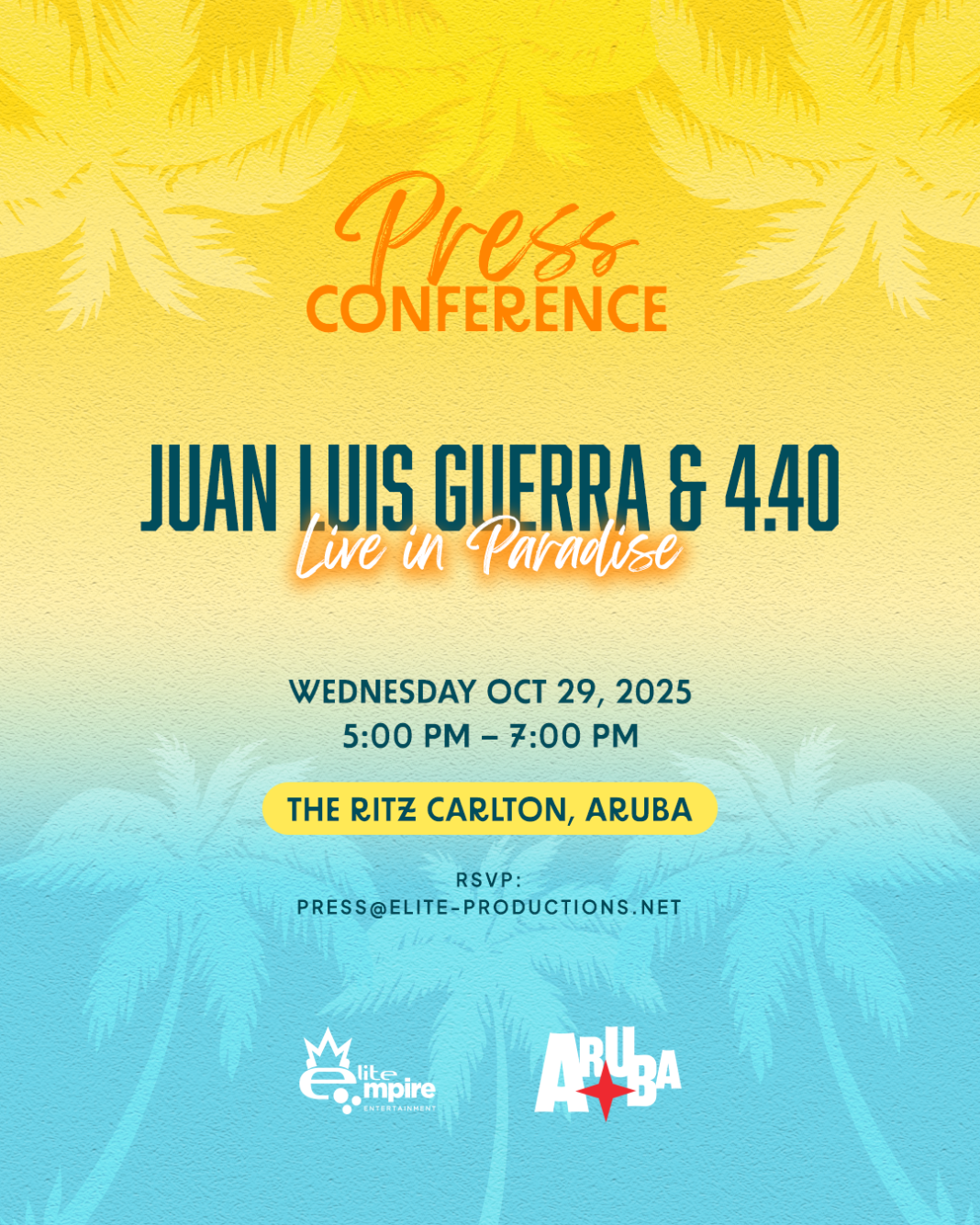 ORANJESTAD — Elite Empire Entertainment organiseert samen met de Aruba Tourism Authority (ATA) en het ministerie van Toerisme op woensdag 29 oktober 2025 een officiële persconferentie rond het evenement A Night in Paradise with Juan Luis Guerra.
