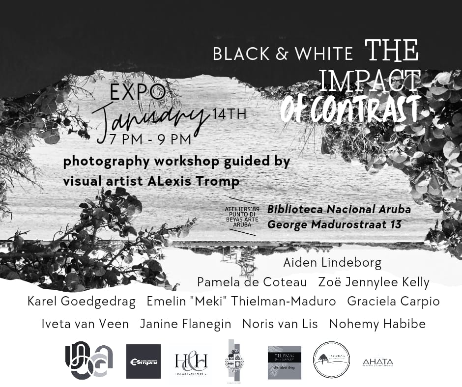 ORANJESTAD — Ateliers ’89 presenteert de tentoonstelling Black and White: the Impact of Contrast in de expositiezaal van Biblioteca Nacional Aruba.