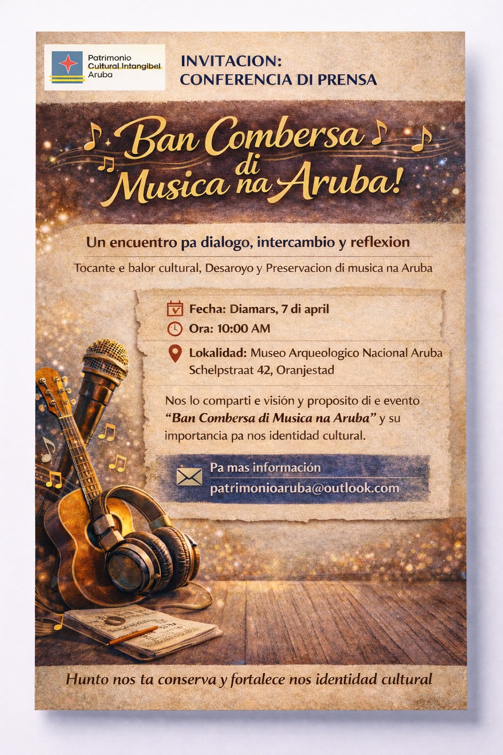 Voor meer informatie of om aanwezigheid te bevestigen, kunnen belangstellenden contact opnemen via patrimonioaruba@outlook.com.