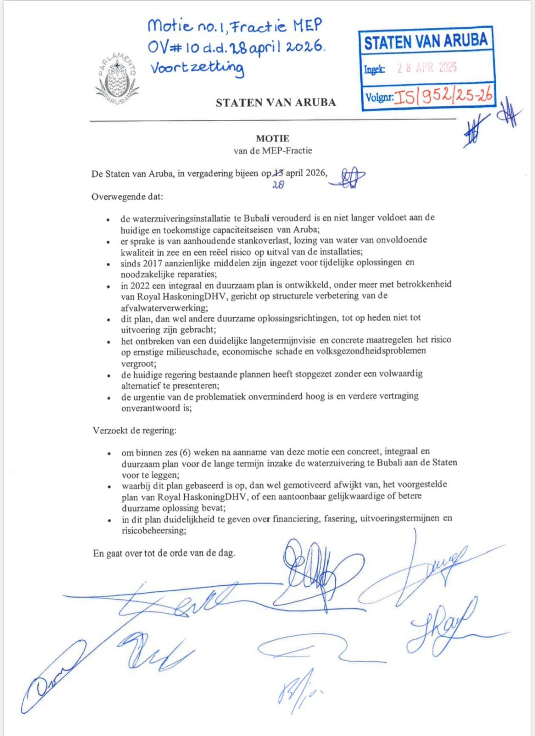 MEP diende daarom een motie in om de regering te verplichten binnen zes weken met een concreet plan te komen. Die motie werd volgens Wever-Croes door AVP en Futuro weggestemd. Zij noemt dat een onverantwoordelijke keuze en stelt dat daarmee duidelijk is geworden dat politieke strijd voor deze partijen belangrijker is dan het welzijn van de bevolking.