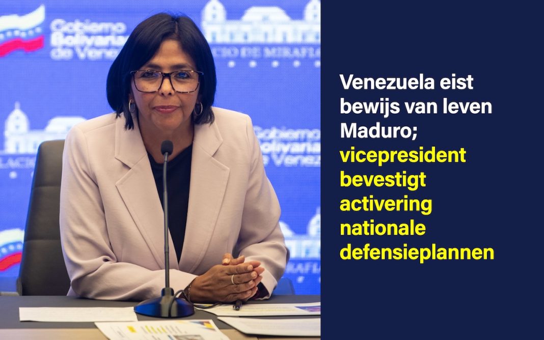 CARACAS – 3 januari 2026 — De Venezolaanse vicepresident Delcy Rodríguez heeft in een live uitgezonden verklaring op de staatszender bevestigd dat de regering bewijs van leven eist van president Nicolás Maduro en first lady Cilia Flores, na berichten over een Amerikaanse militaire operatie op Venezolaans grondgebied.
