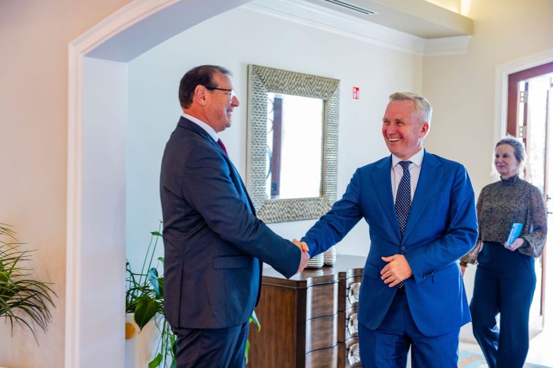 Gouverneur Alfonso Boekhoudt heeft maandag staatssecretaris Eric van der Burg ontvangen voor een audiëntie op Cas Ceremonial. Tijdens het overleg stonden de rijkswet houdbare overheidsfinanciën Aruba (HOFA) en de recente evaluatie van de Landspakketten centraal.