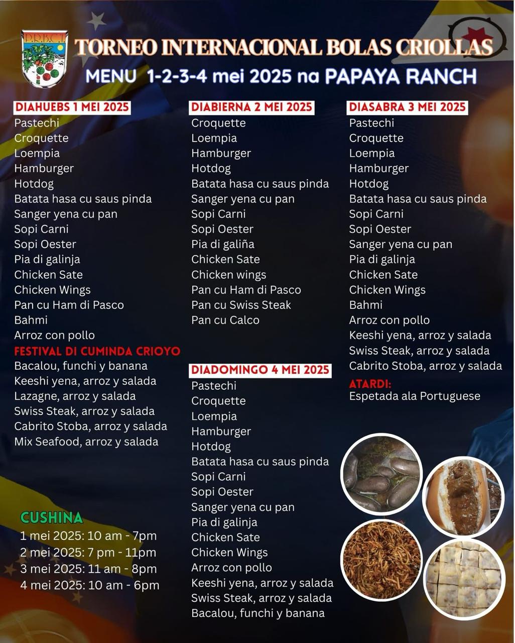 Gedurende de dag is er ook een festival met lokale gerechten. Bezoekers kunnen onder meer terecht voor cabritostoof, gemengde zeevruchten, bacalao en keshi yena.