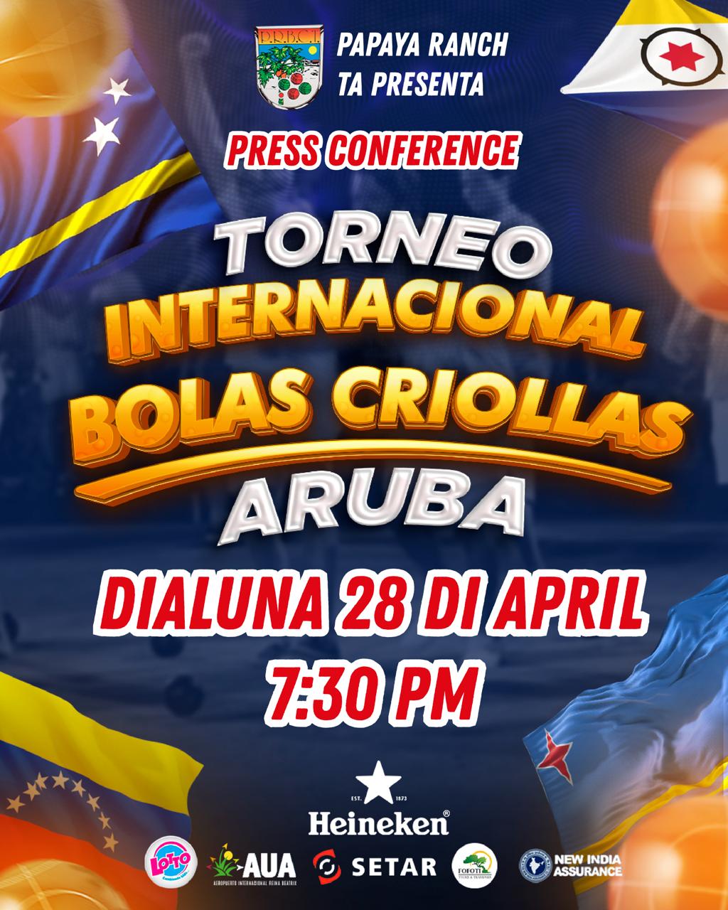 Papaya Ranch Aruba houdt vanavond, maandag 28 april, een persconferentie over het Torneo Internacional di Bolas Criollas. De bijeenkomst begint om 19.30 uur en vindt plaats bij Papaya Ranch.