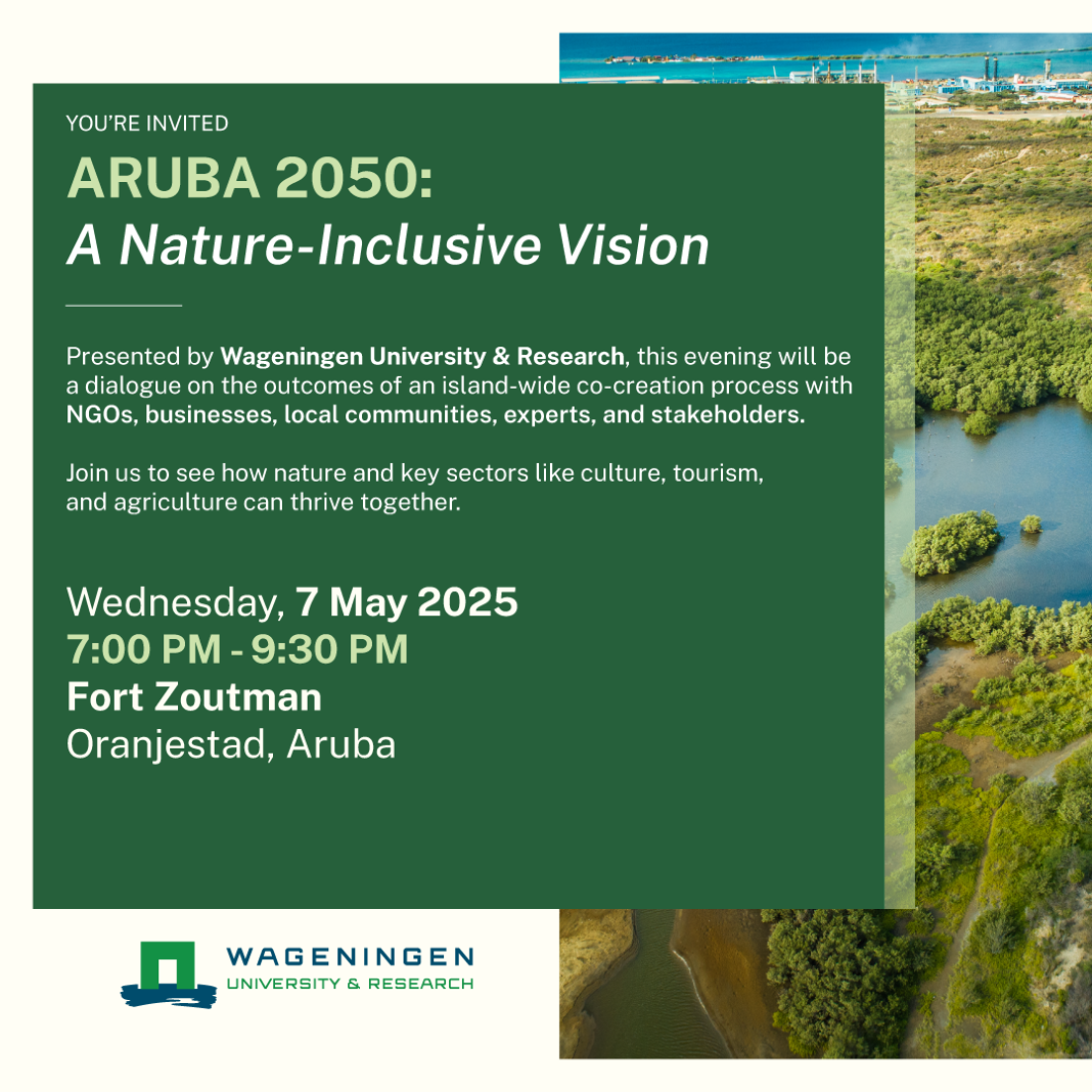 ORANJESTAD – Wageningen University & Research (WUR) brengt van 5 tot en met 9 mei een bezoek aan Aruba om de resultaten te presenteren van het TRUPIAL-project. Dat project heeft geleid tot het rapport Aruba 2050 – A Nature Inclusive Vision, waarin een natuurinclusieve toekomstvisie voor het eiland wordt uitgewerkt.