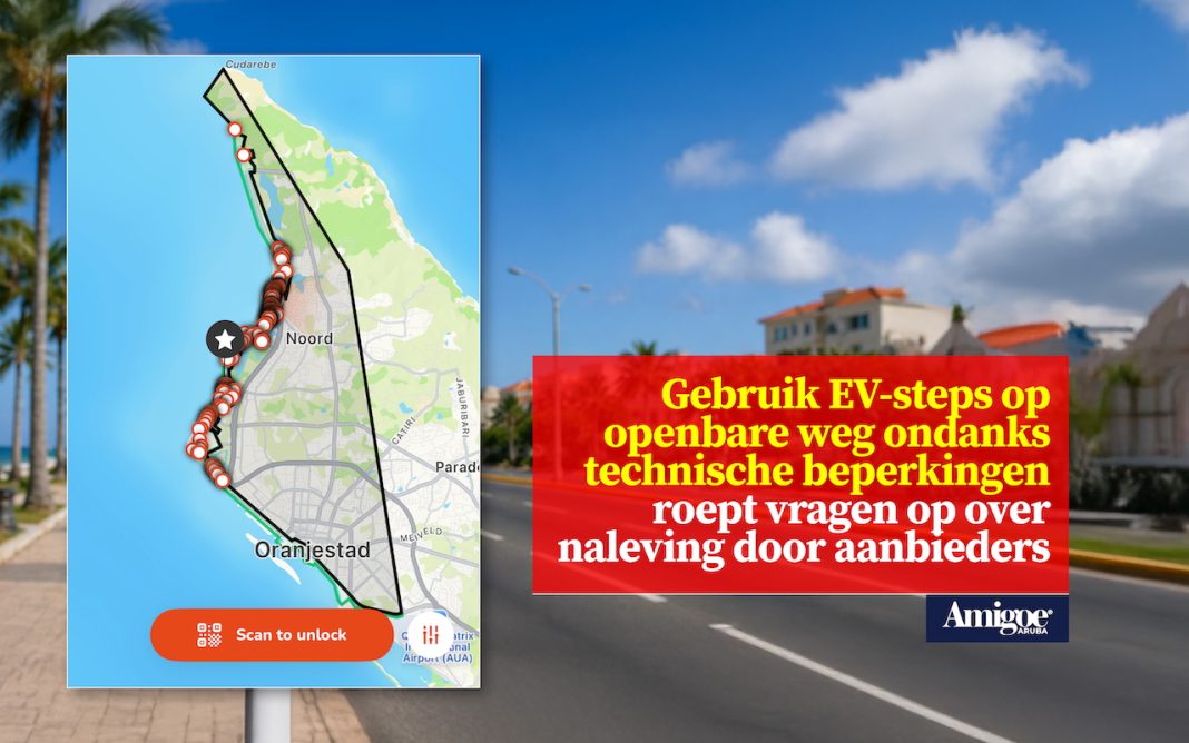 Het gebruik van EV-steps op openbare wegen in Aruba blijft plaatsvinden, ondanks de recente bevestiging van de minister van Justitie dat er geen wettelijke basis bestaat voor toelating van deze voertuigen in de publieke ruimte. Tegelijkertijd groeit de aandacht voor de rol van aanbiedende bedrijven, die technisch in staat zijn het gebruik te beperken, maar dit in de praktijk niet altijd lijken te doen.