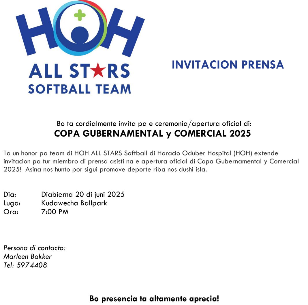 De pers is uitgenodigd voor de officiële opening van de Copa Gubernamental/Comercial 2025, een softbaltoernooi dat in 2025 wordt gehouden.