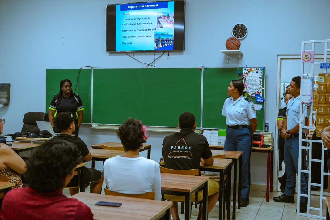 ORANJESTAD – Op La Salle College in Oranjestad heeft woensdagavond de eerste informatieavond plaatsgevonden voor jongeren die belangstelling hebben voor het politievak. De bijeenkomst was bedoeld om hen te informeren over het werk van de politie, de geldende procedures en wetgeving, de toelatingseisen en opleidingsmogelijkheden, maar ook over de veranderingen die het politiewerk met zich meebrengt voor het dagelijks leven.